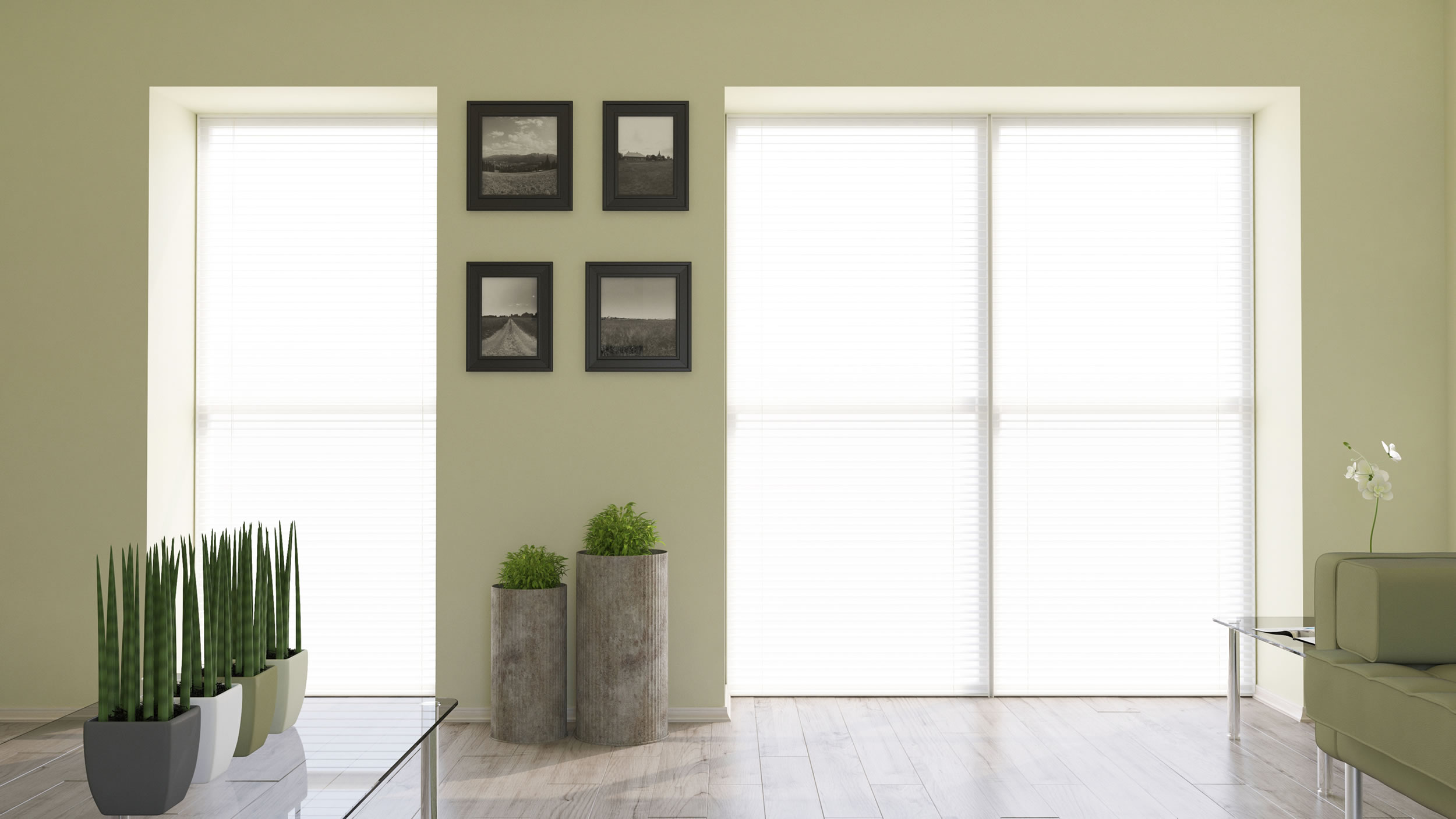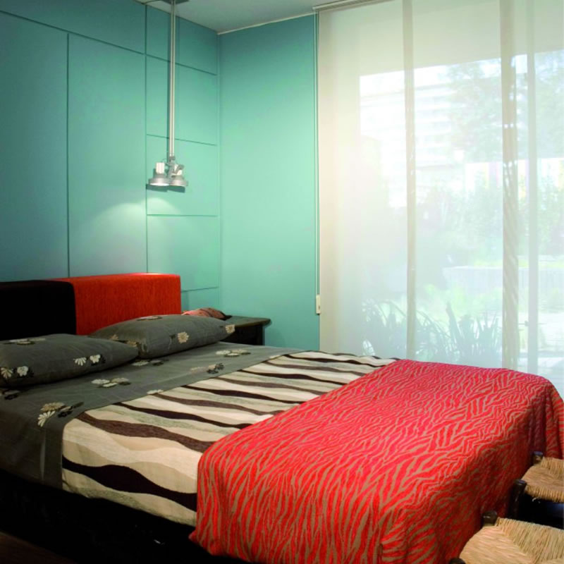Estos paneles tienen aspecto similar a los biombos. Pueden cubrir grandes aberturas con una sola cortina. Para su accionamiento se deslizan los paneles horizontalmente hacia los lados.